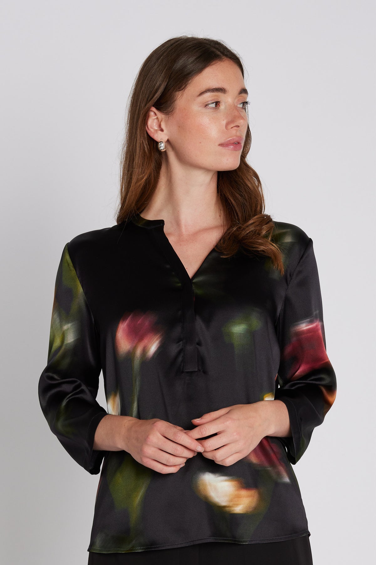 2009PBOBali er en feminin bluse med 3/4-ærmer, løs pasform og eksklusivt blomsterprint. Designet med V-udskæring og elegant fald.