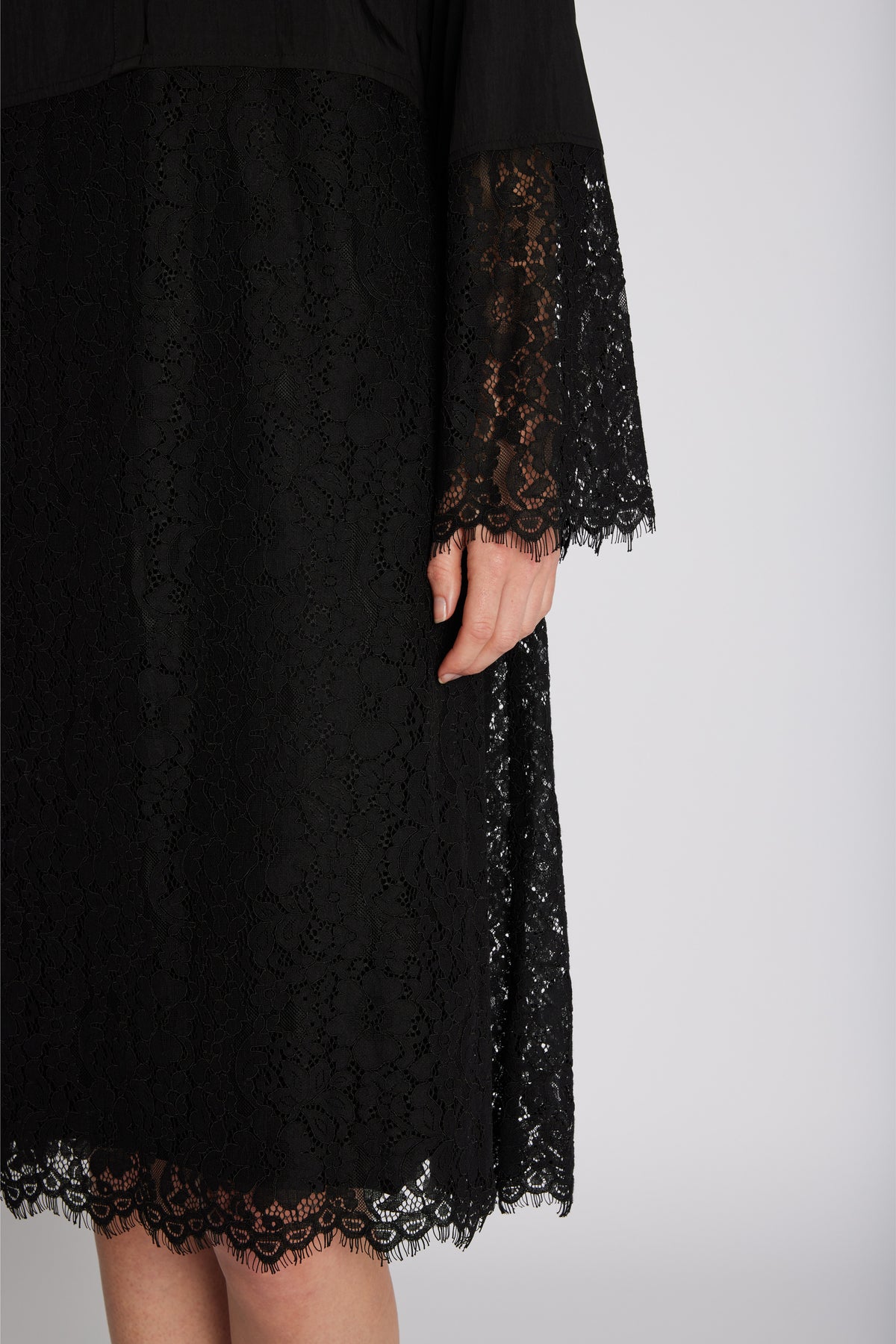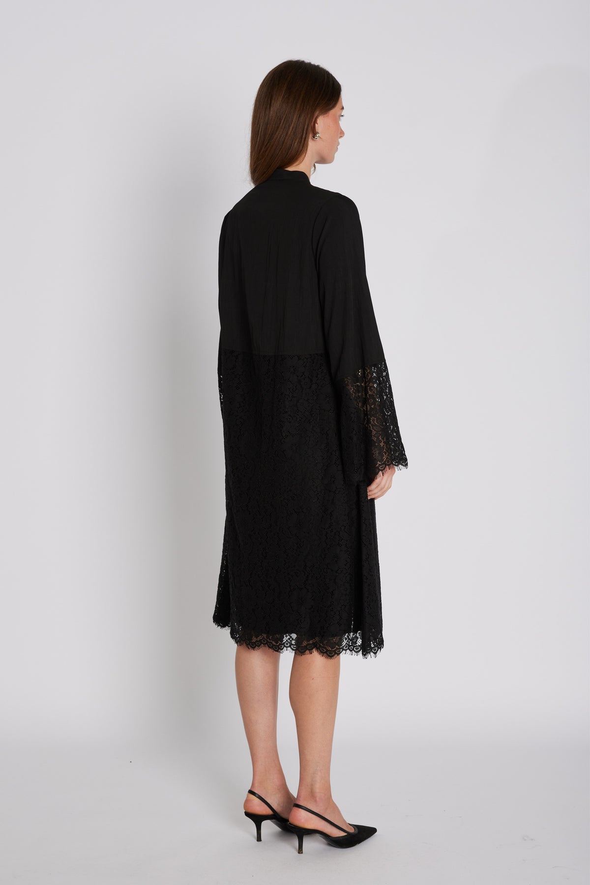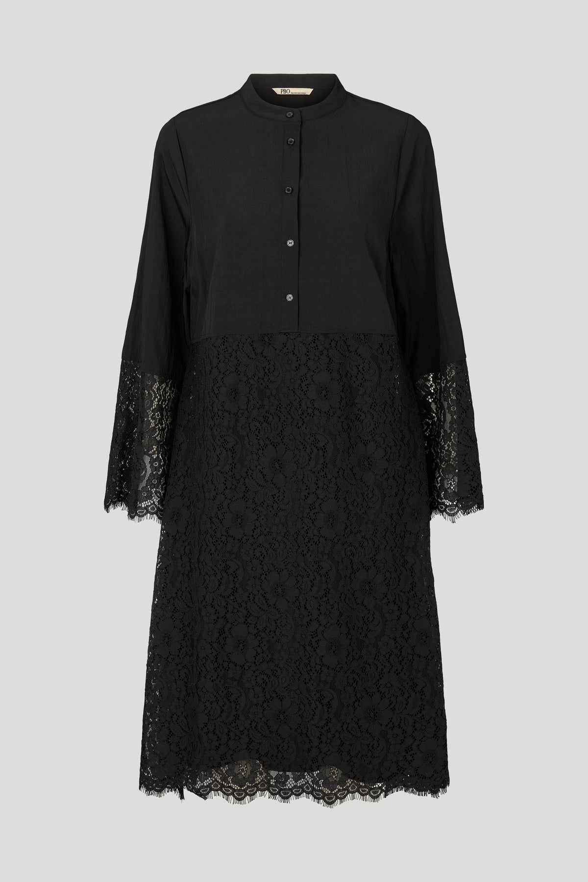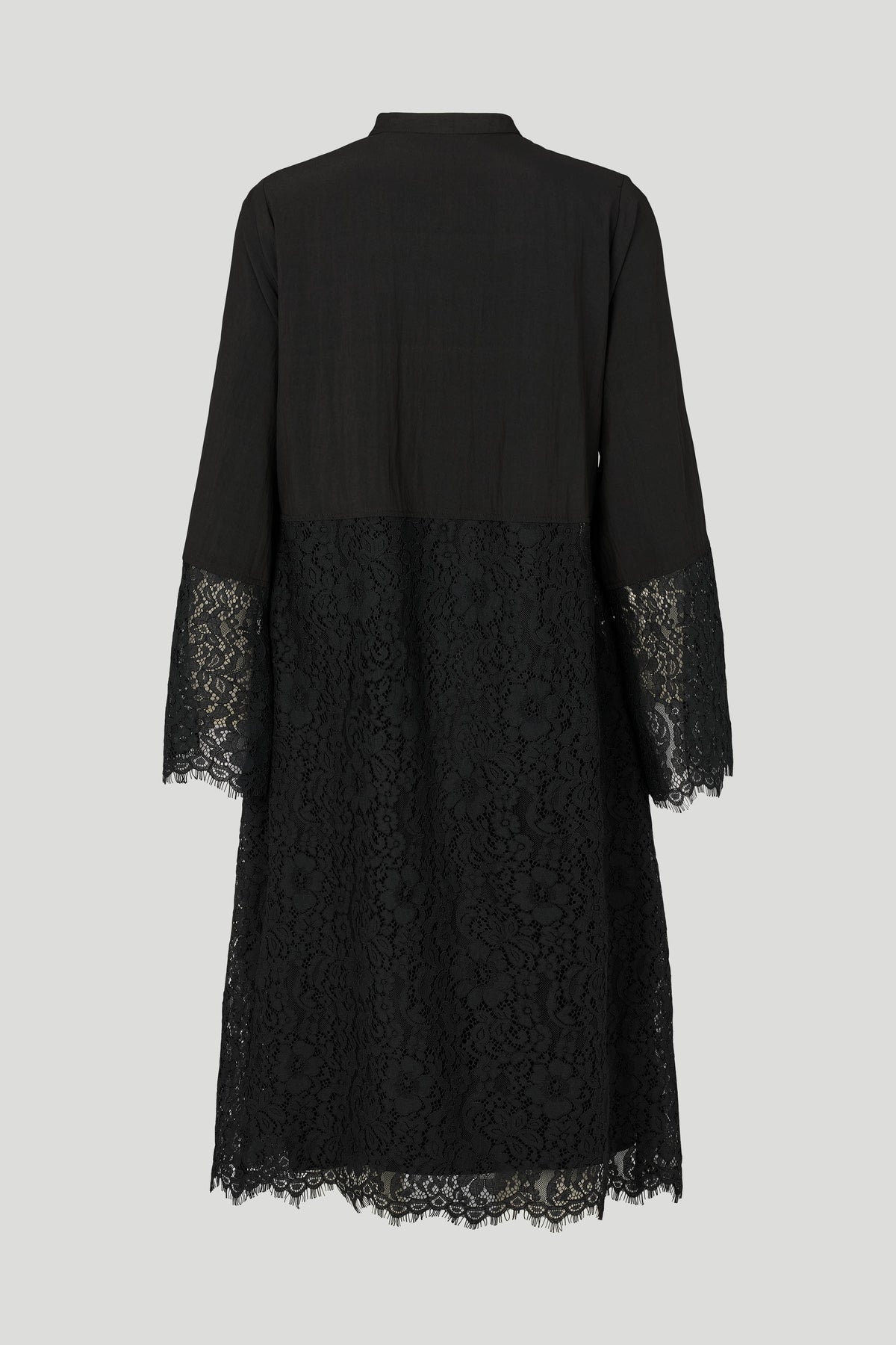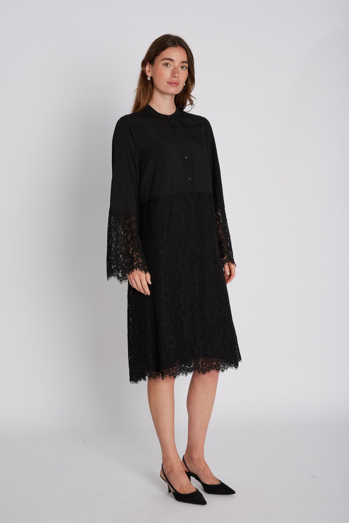 5177PBOLimoges kjole er en lige silhouet med knaplukning foroven, stående krave og smukke blondedetaljer på nederdel og ærmer. Elegant og tidløs.