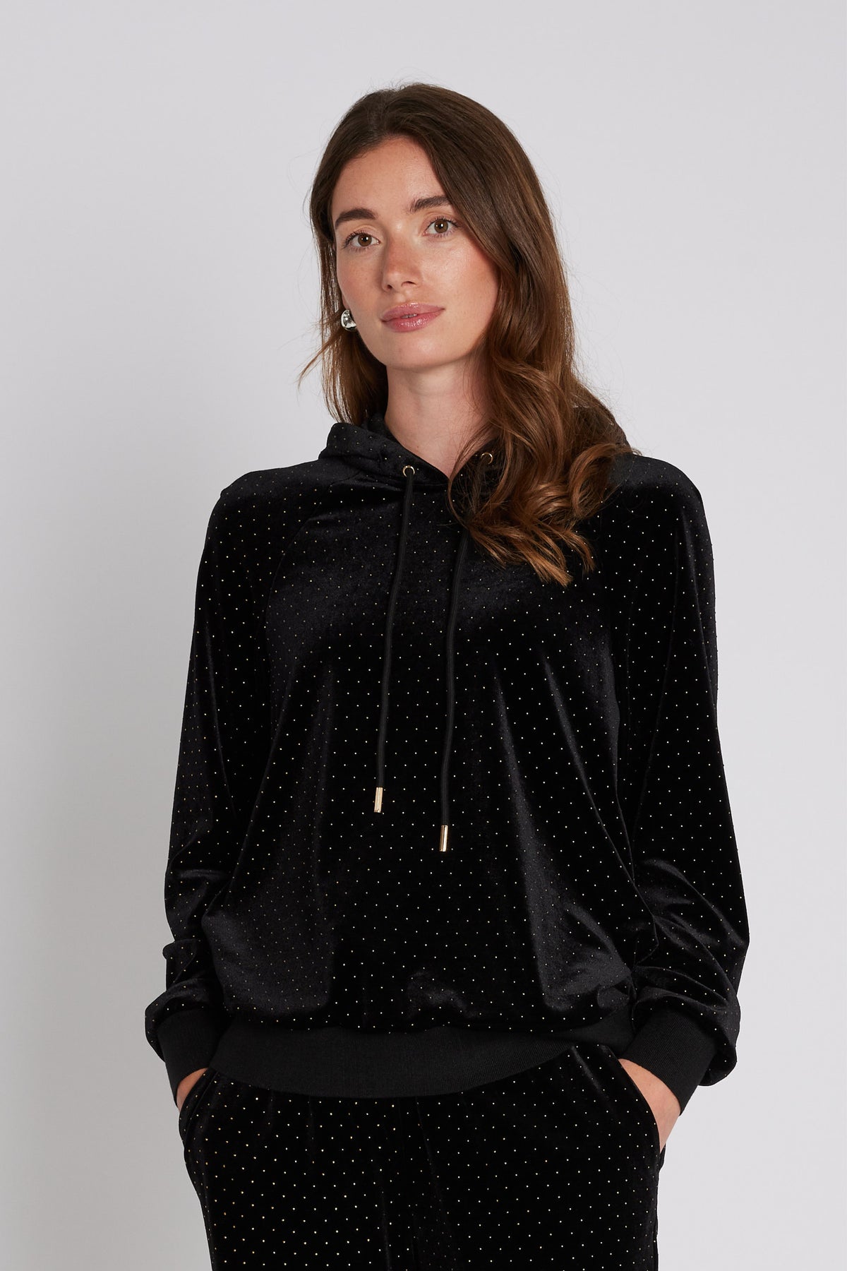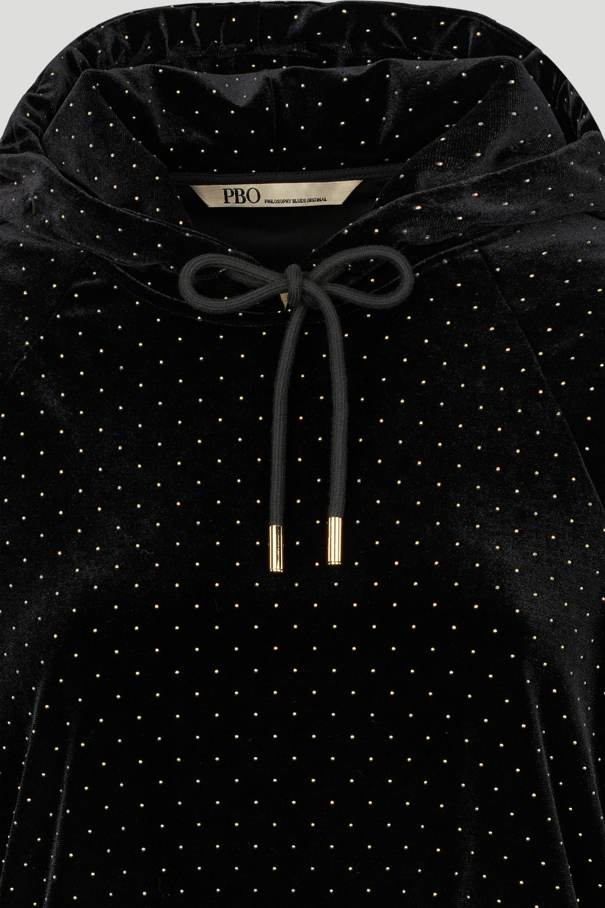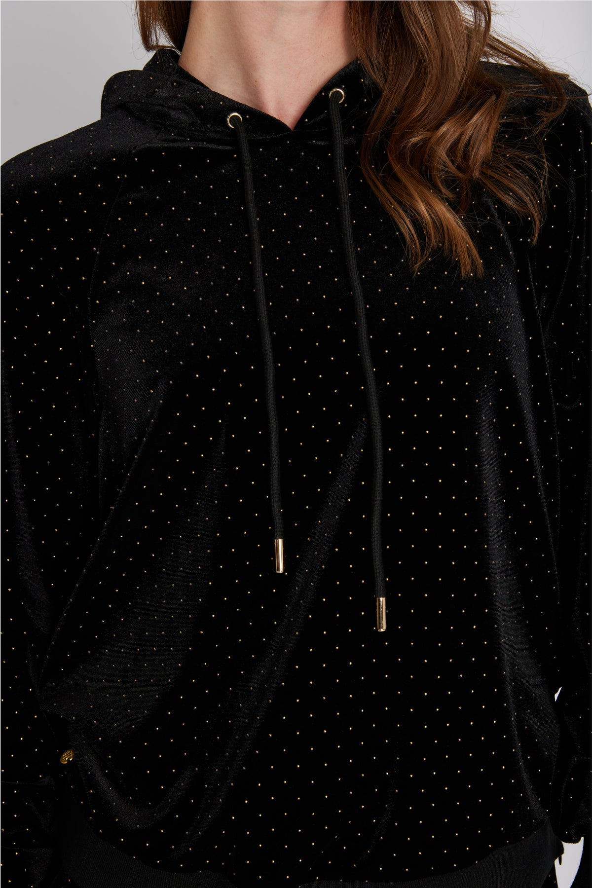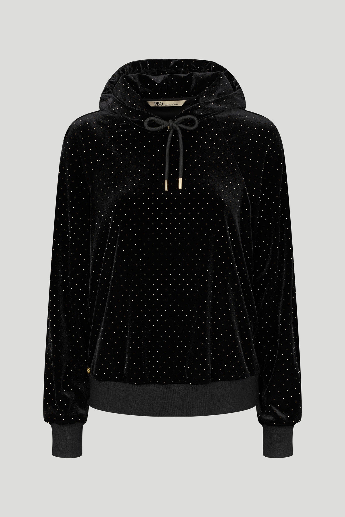 4312PBOMarlip sweatshirt har en afslappet pasform med hætte, ribkanter og dekorative allover prikdetaljer. En sporty og samtidig glamourøs fortolkning af den klassiske hoodie.