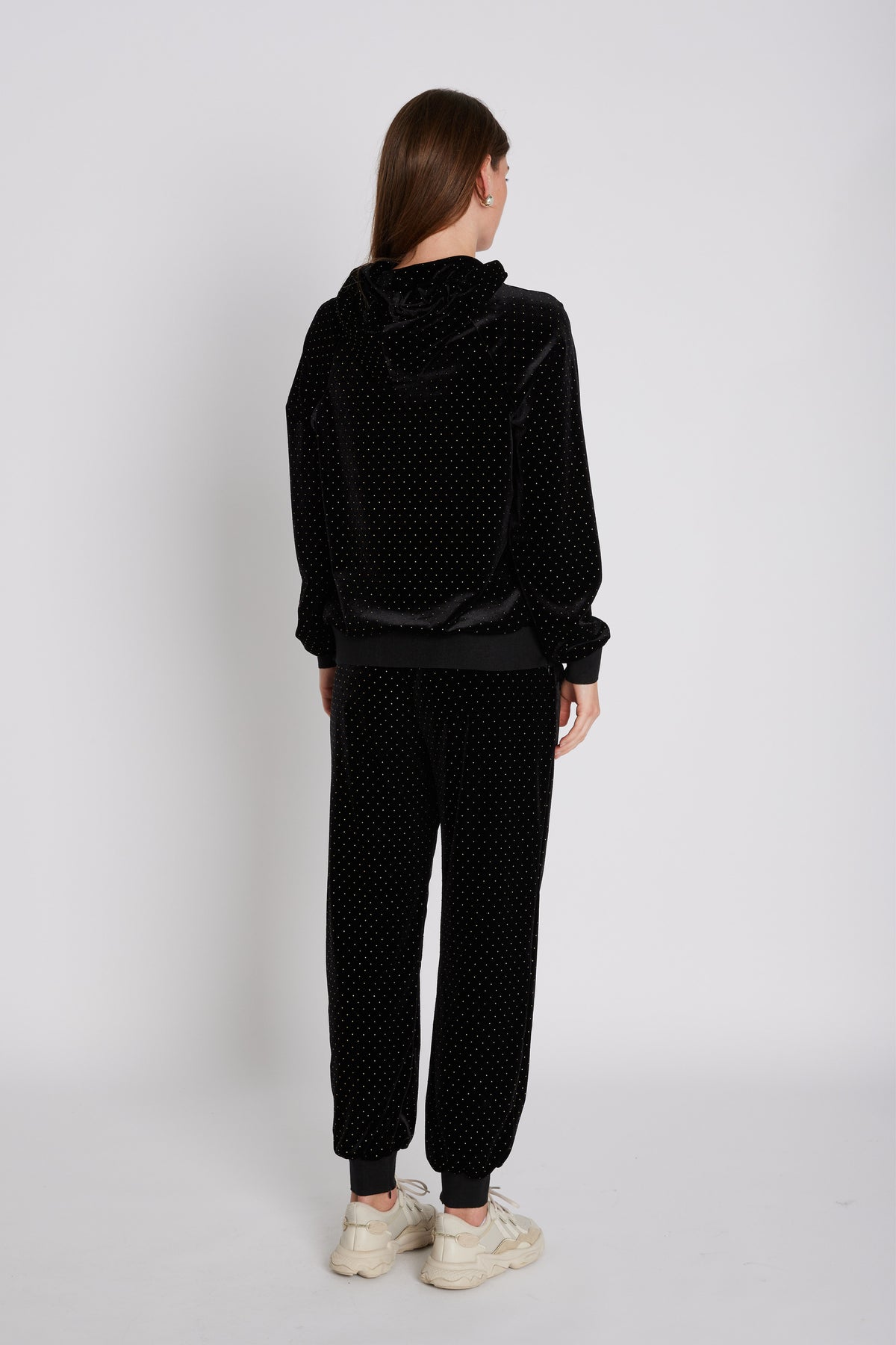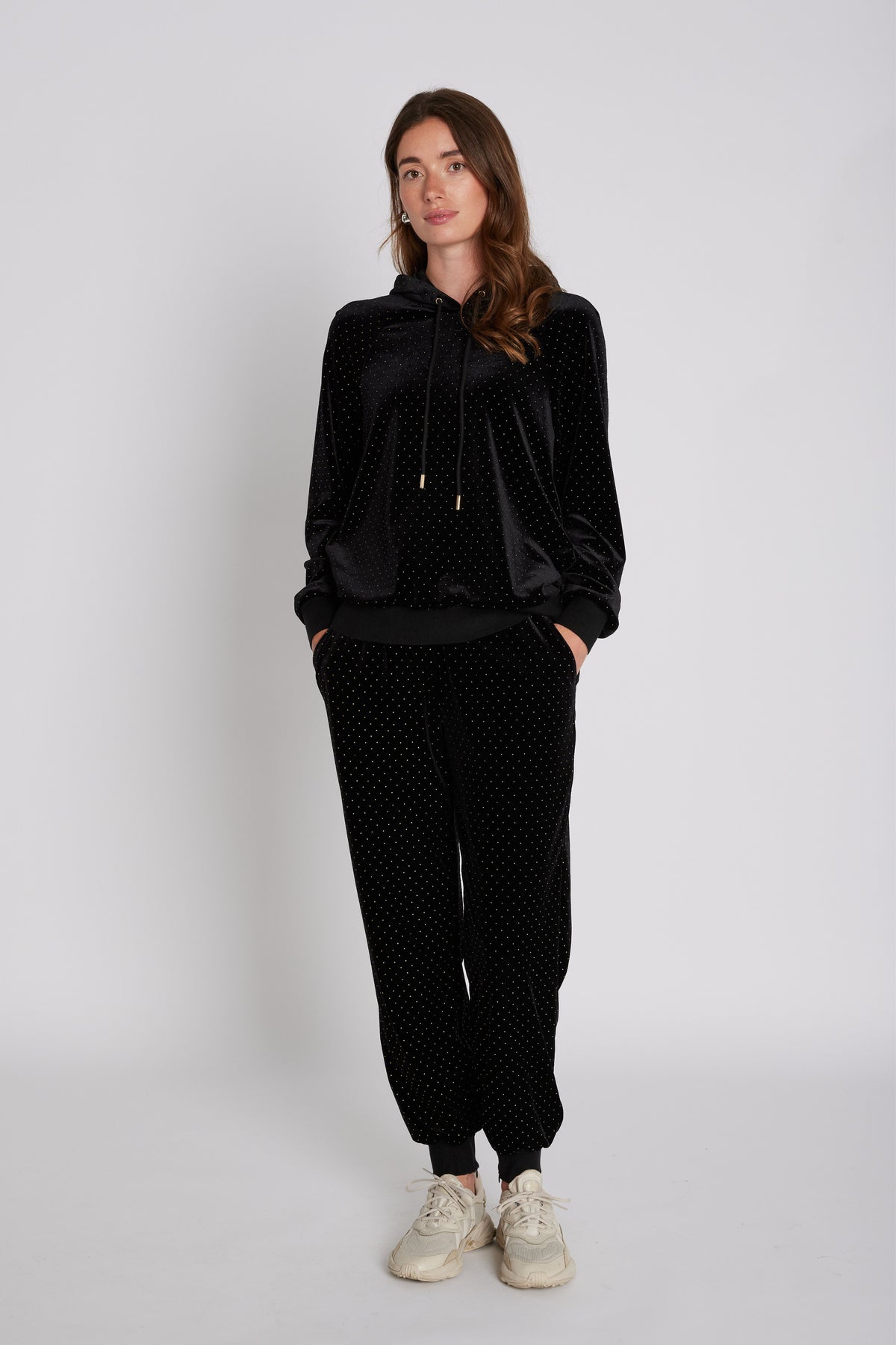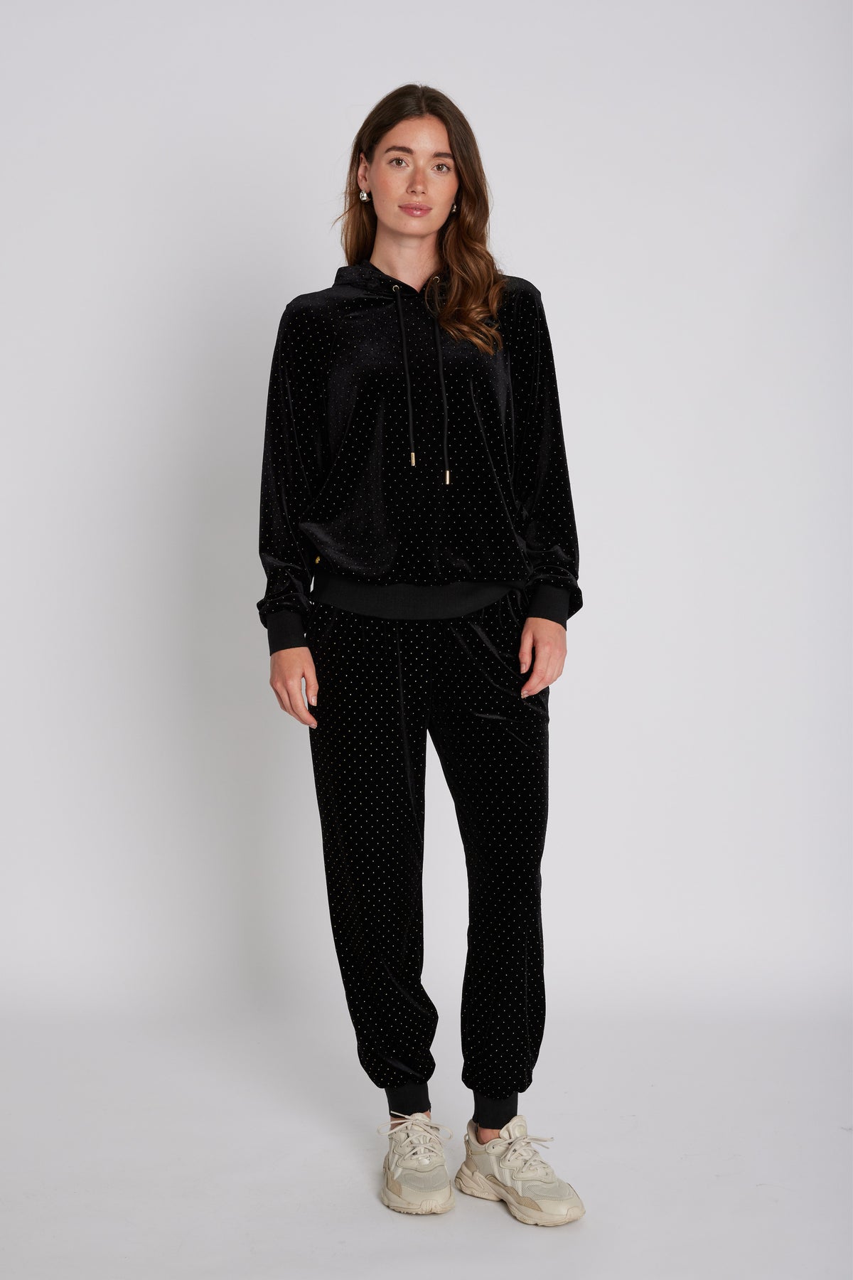 4312PBOStarship sweatpants har en løs, lige pasform med elastisk linning, snøre og ribkant ved anklerne. De dekorative prikkeeffekter giver et luksuriøst twist til en afslappet style.