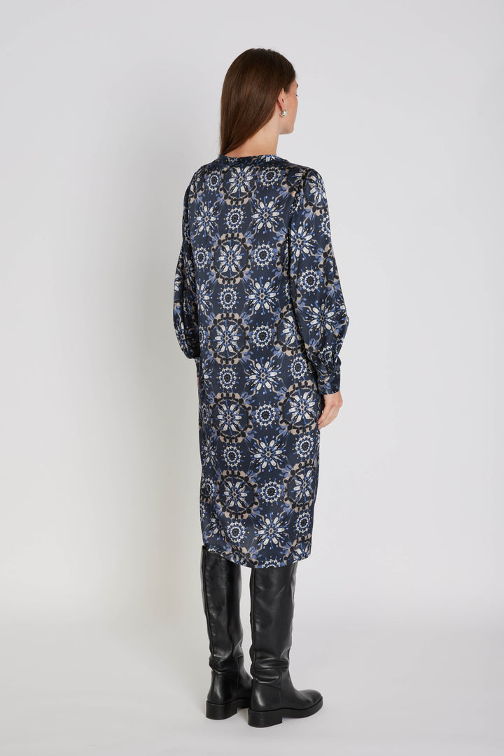 2009PBOAnola er en knælang kjole med V-udskæring, draperede ærmer og slids i sidesømmen. Lange indsnit bagpå sikrer en flot pasform, mens plisserede manchetter fuldender det elegante udtryk.