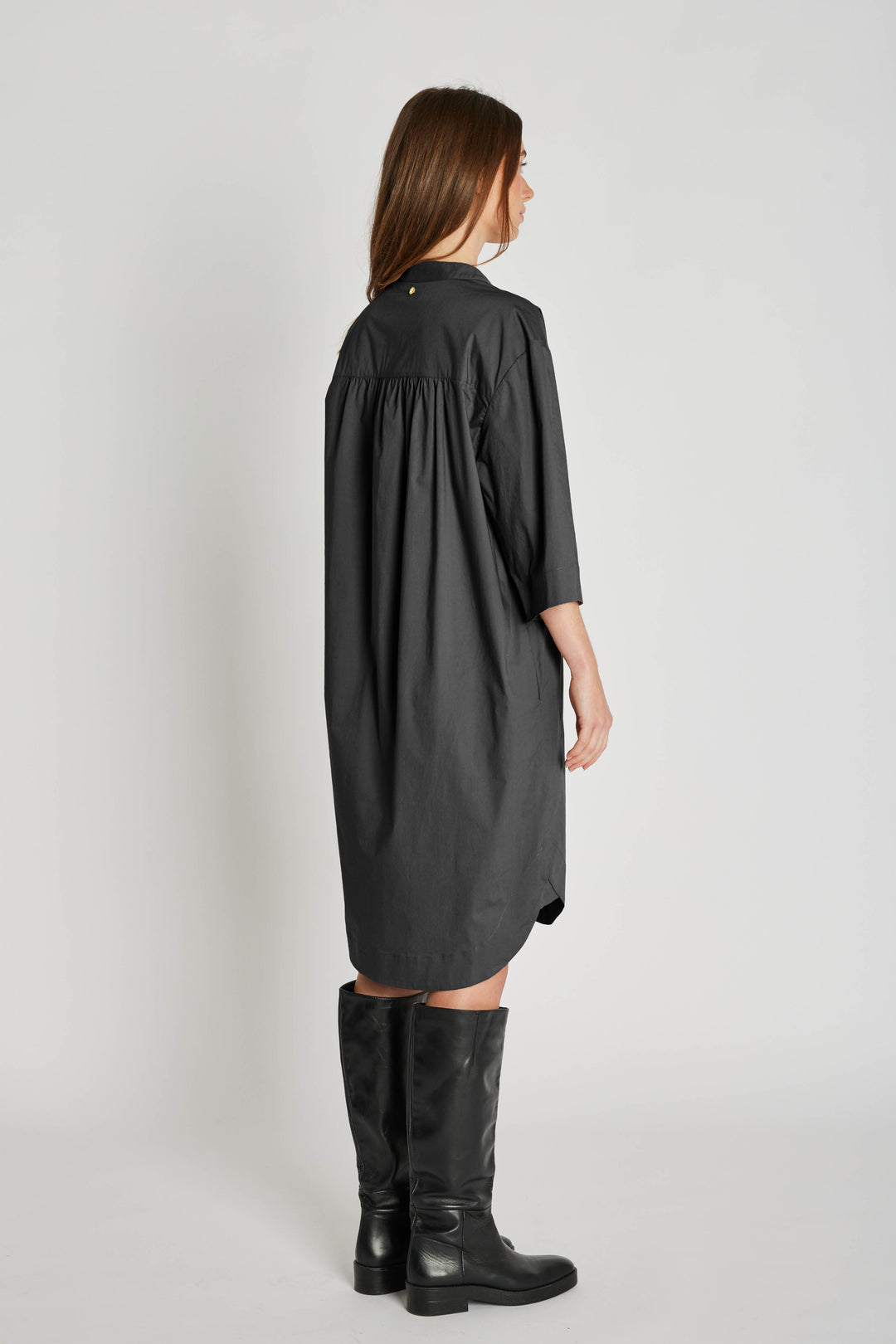 4111PBOMahalo er en løs skjortekjole med 3/4-ærmer, stående krave og fine knapdetaljer foran. Perfekt til et afslappet og stilrent udtryk.