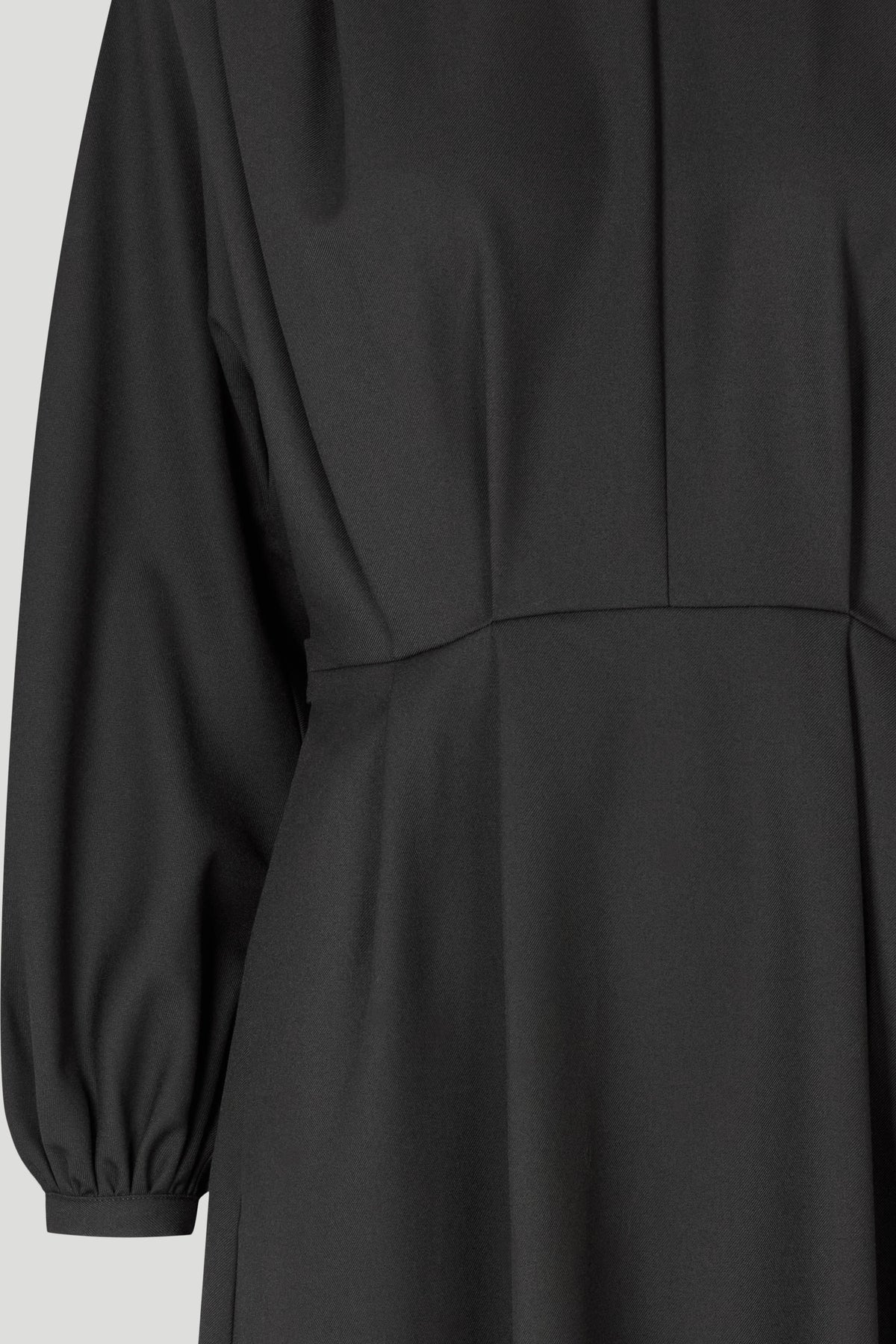 5153PBORani er en feminin kjole med markeret talje, lange pufærmer og diskrete læg foran. Kjolen har en elegant silhuet, som fremhæver figuren på sofistikeret vis.