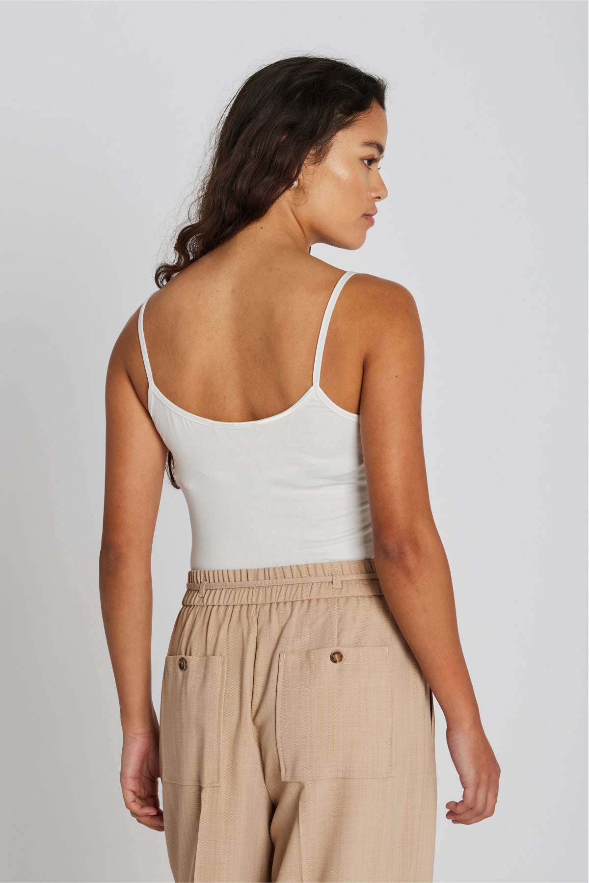 Brug den alene med jeans for et enkelt hverdagslook, eller style den under en blazer som et elegant basislag. Perfekt til både lag-på-lag styling og varme dage.