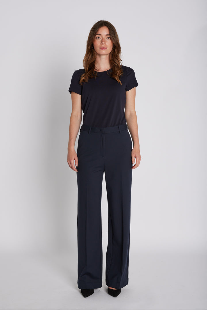 1399PBOJoyTogo bukser kombinerer klassisk elegance med praktiske detaljer. De brede ben og den justerbare talje giver en behagelig pasform og alsidighed til enhver anledning.
