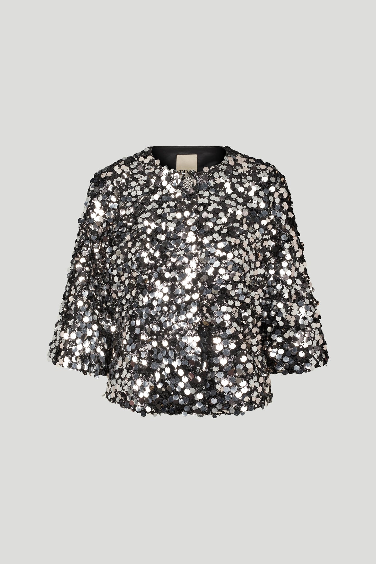 4383PBOCastle cape er en iøjnefaldende statement-cape, designet i en base af store, skinnende pailletter, der reflekterer lyset og skaber et glamourøst udtryk. Den korte pasform med trekvartlange ærmer giver et sofistikeret og festligt look, mens den elegante lukning foran fuldender designet. Perfekt til særlige lejligheder, hvor du vil tilføje eksklusiv glans til dit outfit.