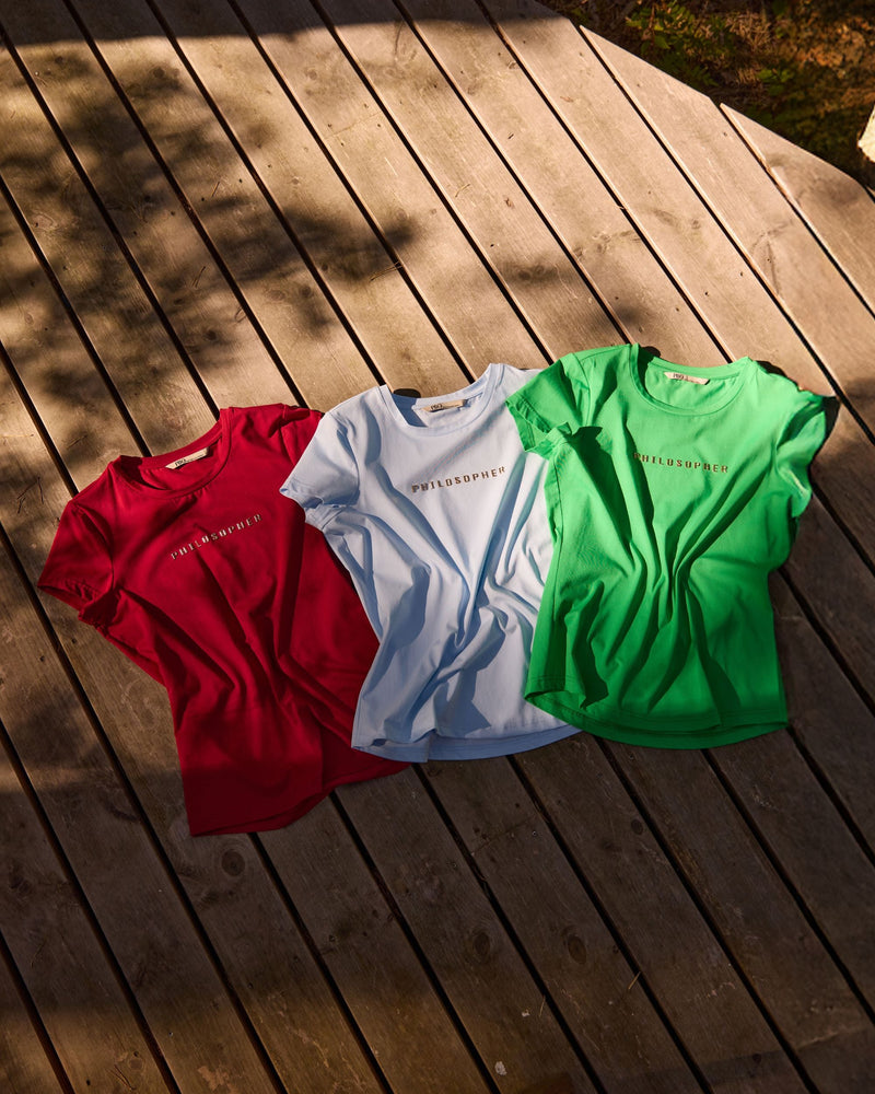 - Ribbed edges at neck, sleeves and hem