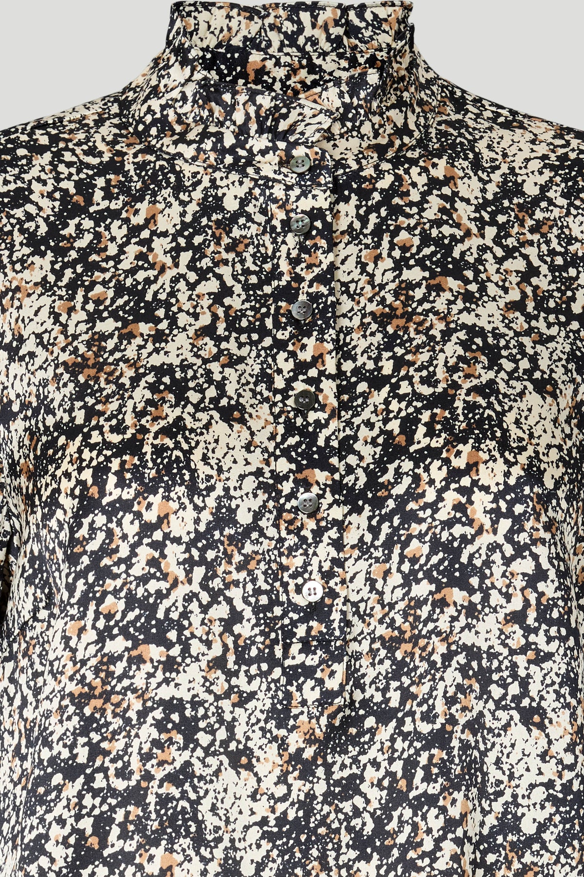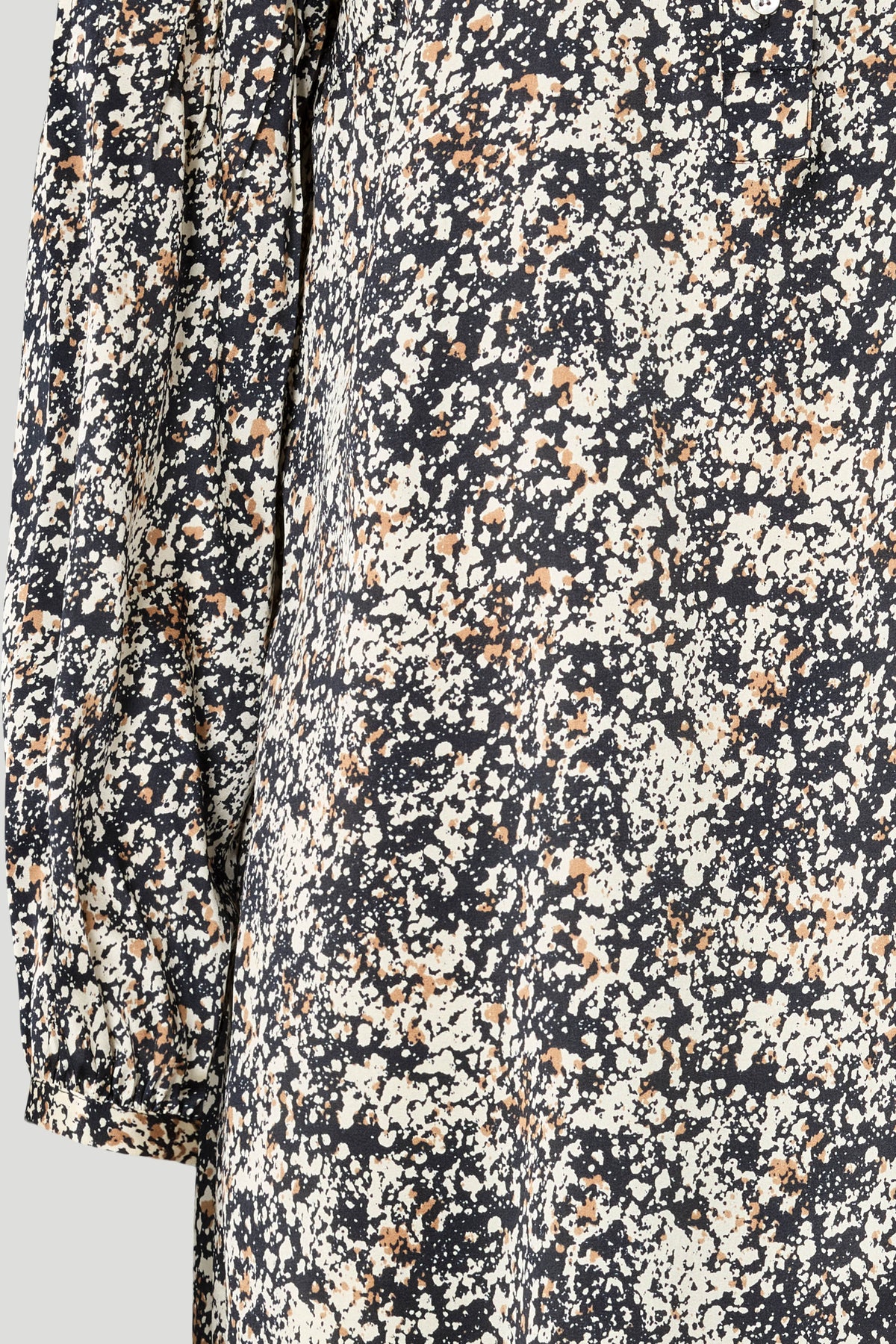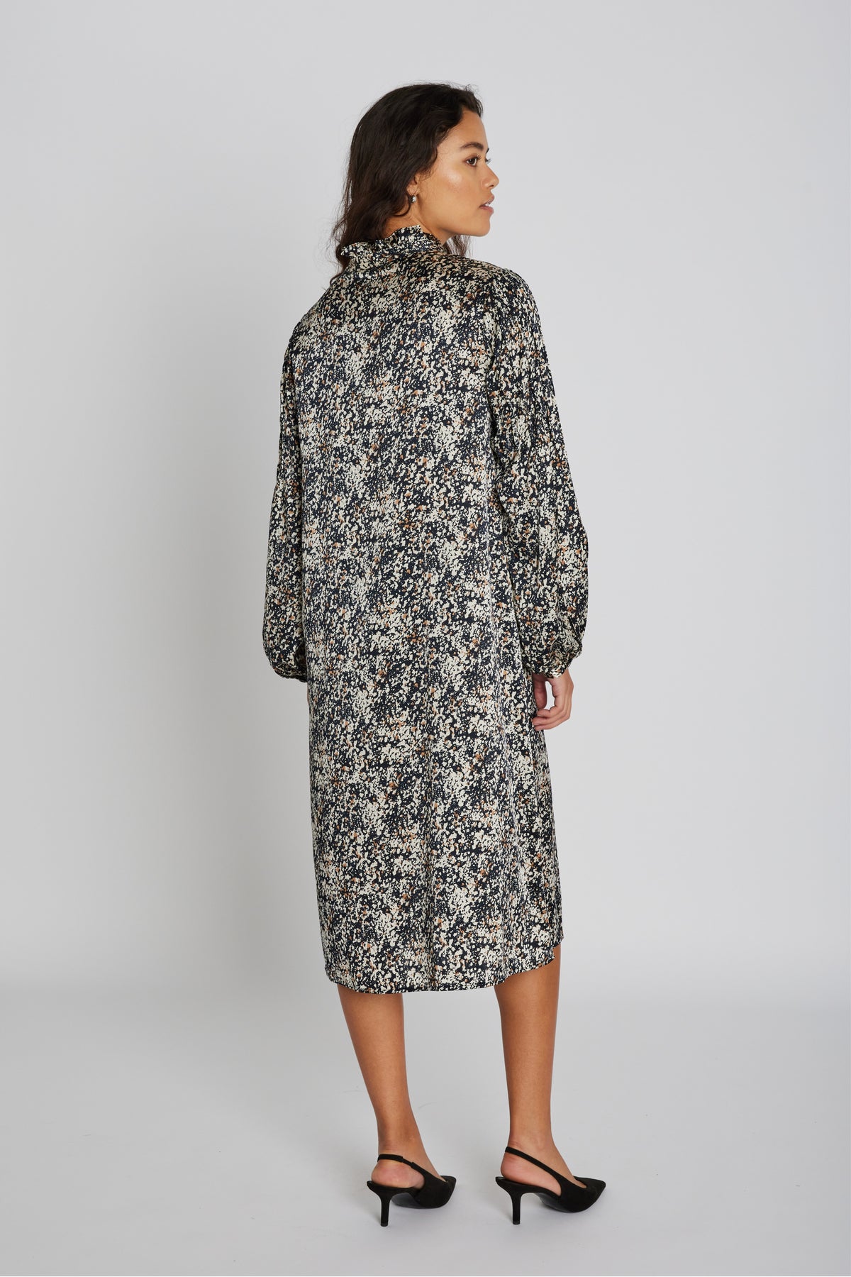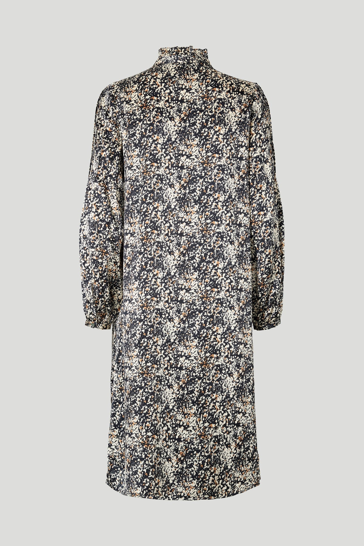 2009PBORina dress is a midi-length style with a relaxed fit, high neckline and long sleeves, creating an elegant and effortless look in the lightweight patterned fabric.