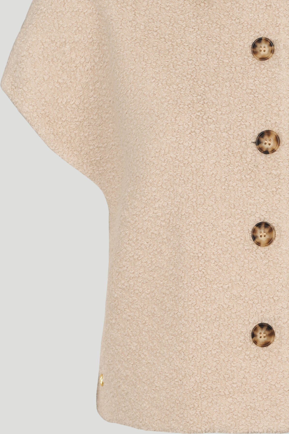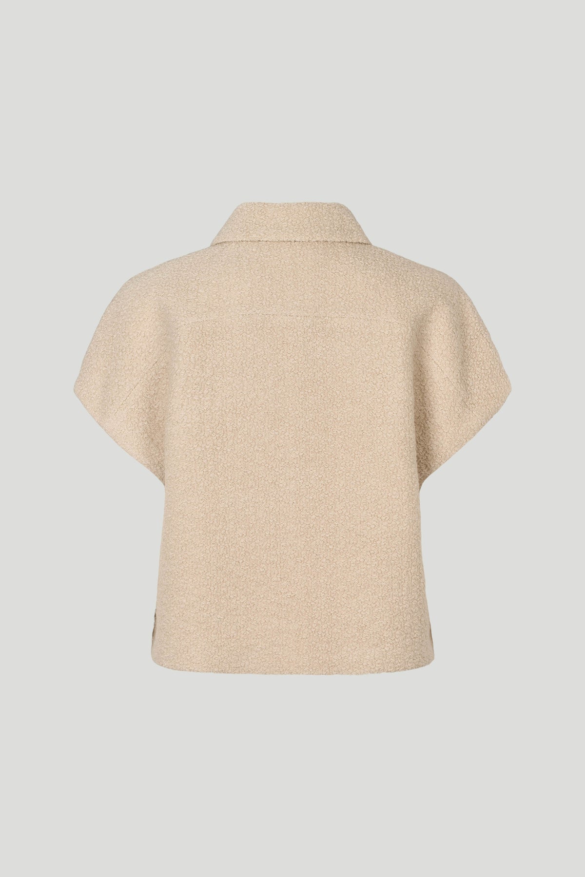 3564PBOTona vest has a relaxed silhouette with short sleeves, a classic collar, and distinctive buttons. Made of a wool blend with a subtle herringbone pattern.