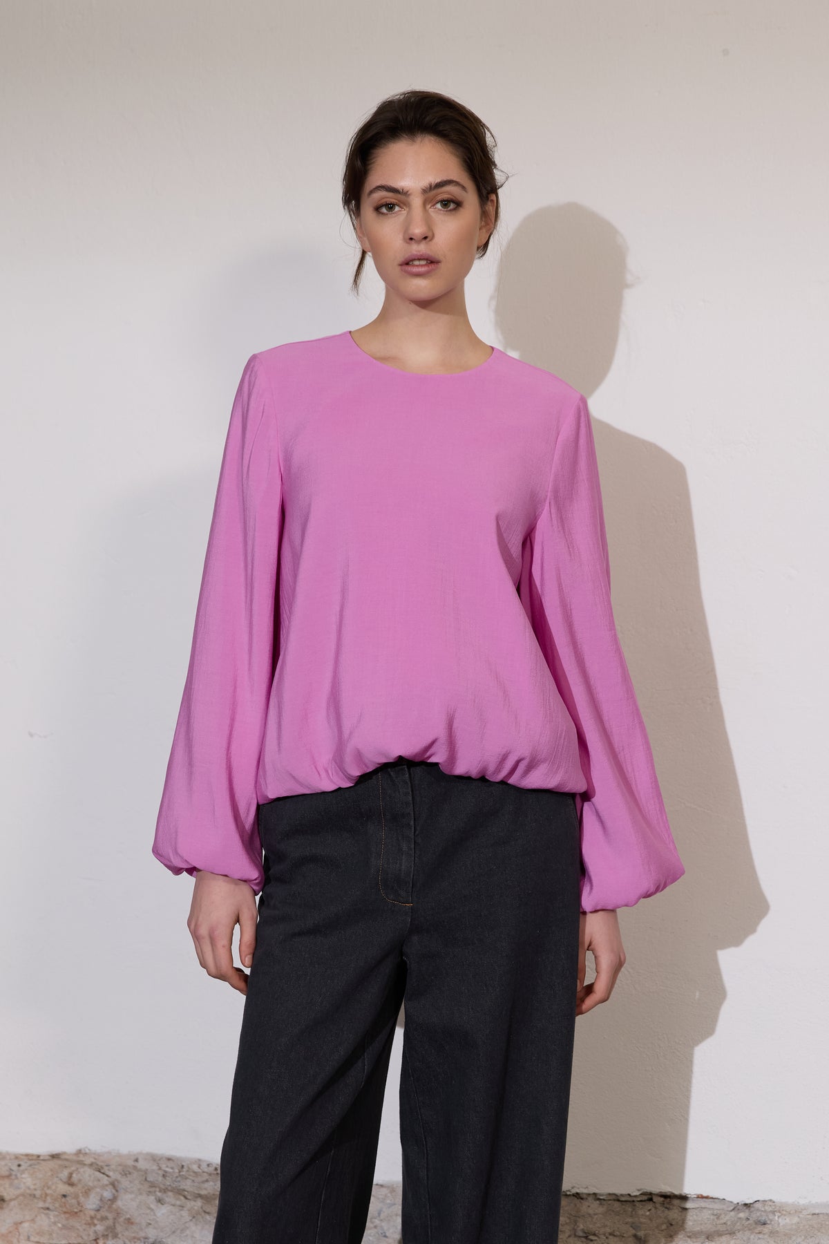 5070PBOBey is a feminine Blouse with a round neckline, long sleeves and elastic hem that creates a nice silhouette.