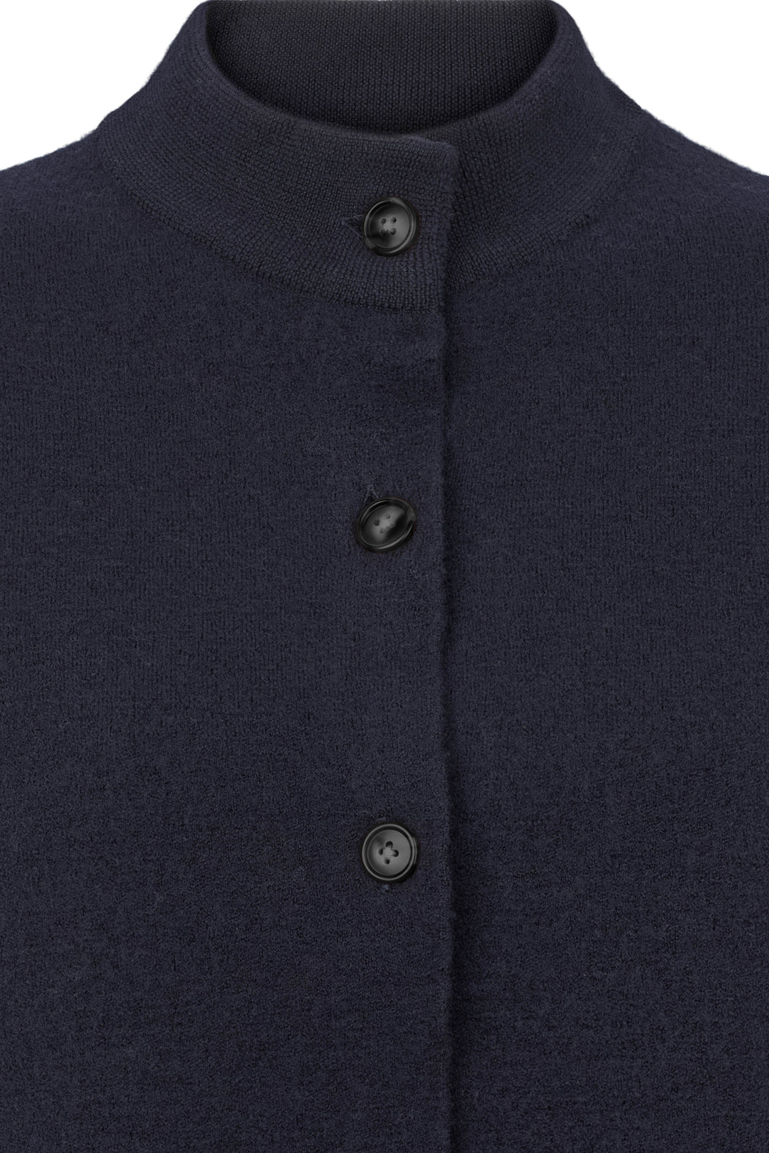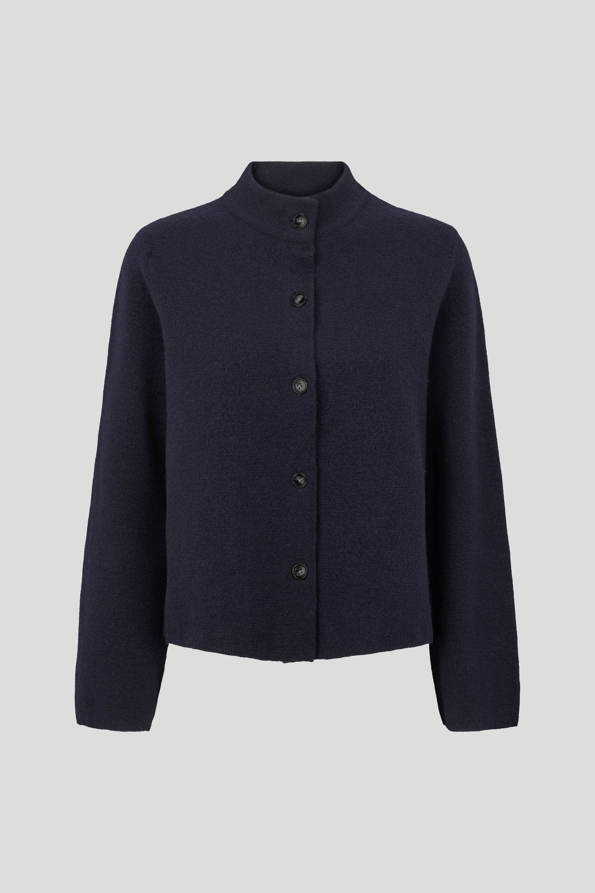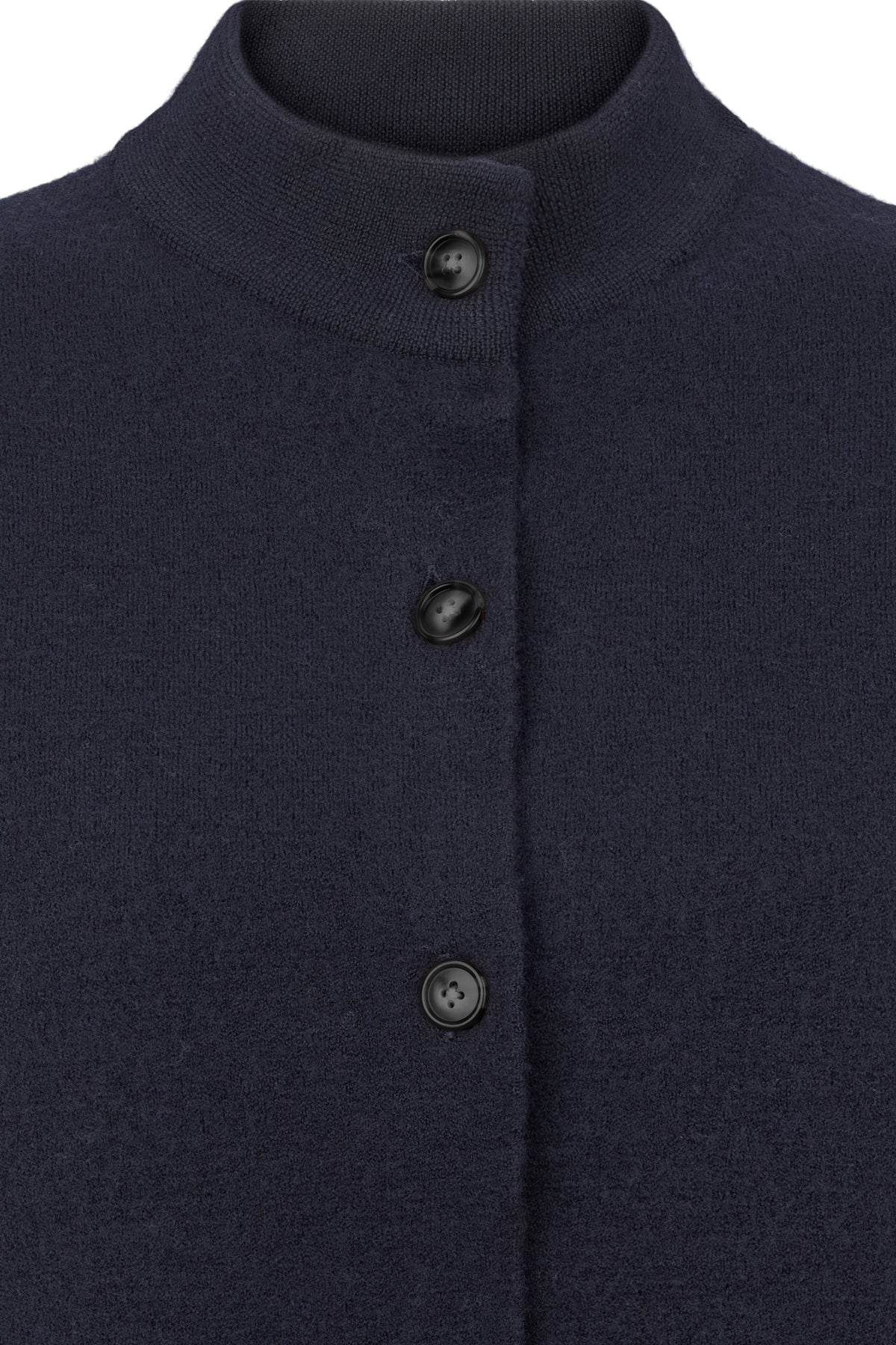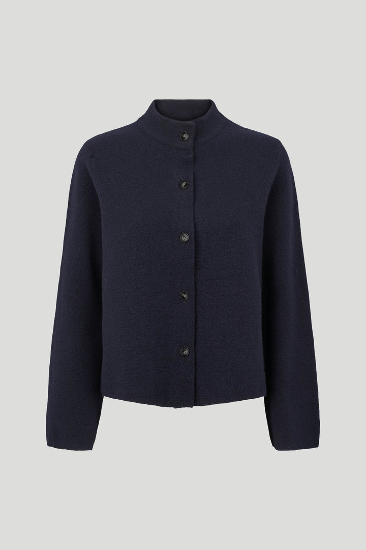 3425PBOMantraMeadow is a short cardigan with a stand-up collar, straight silhouette and front button closure. A simple and refined design for layering.