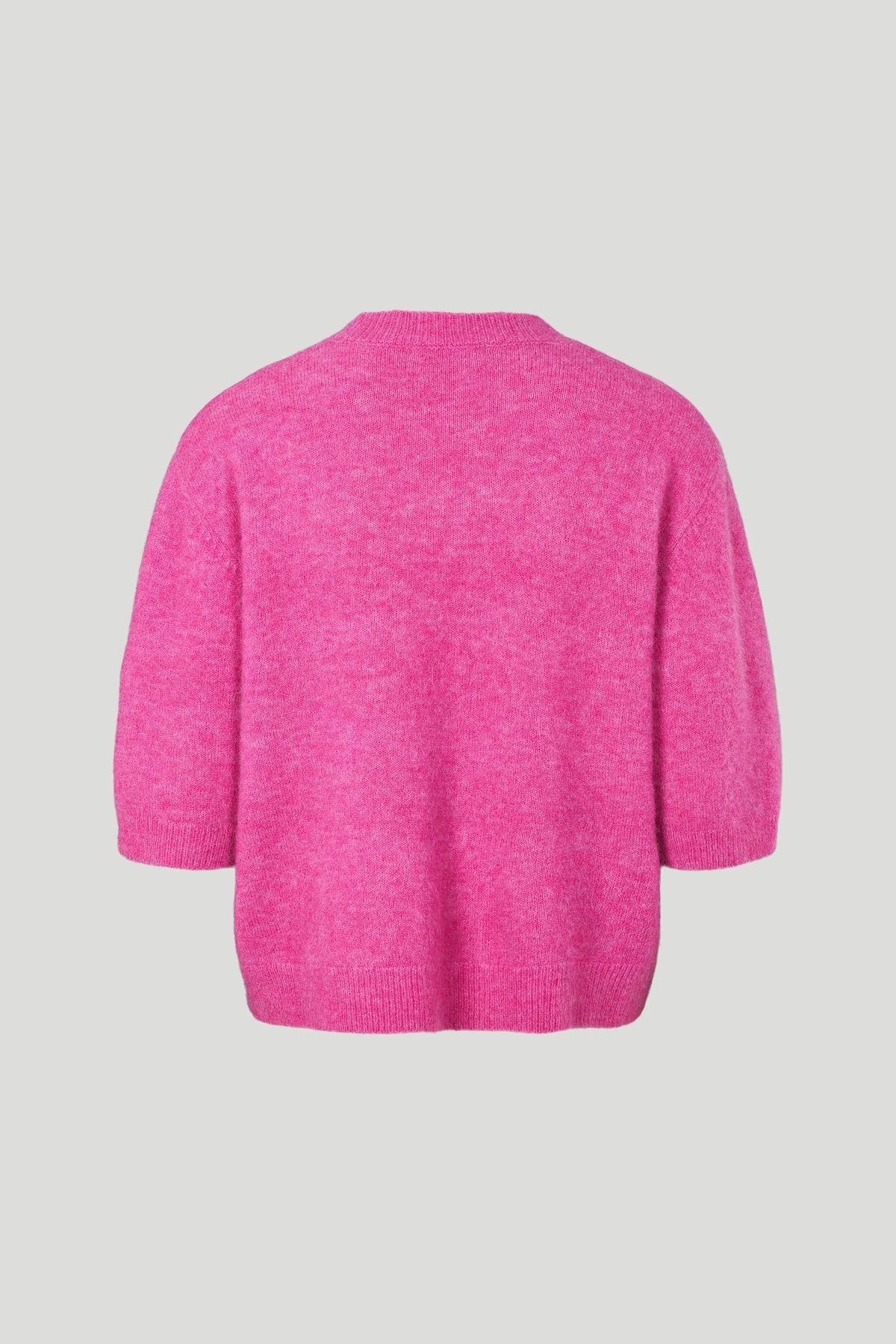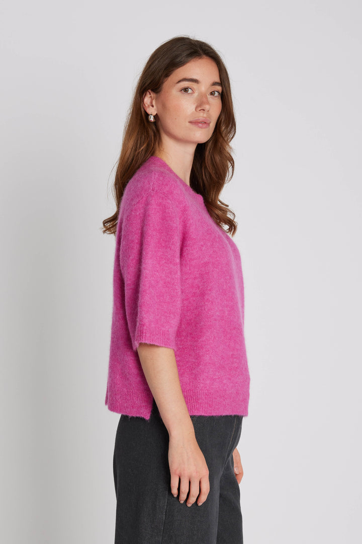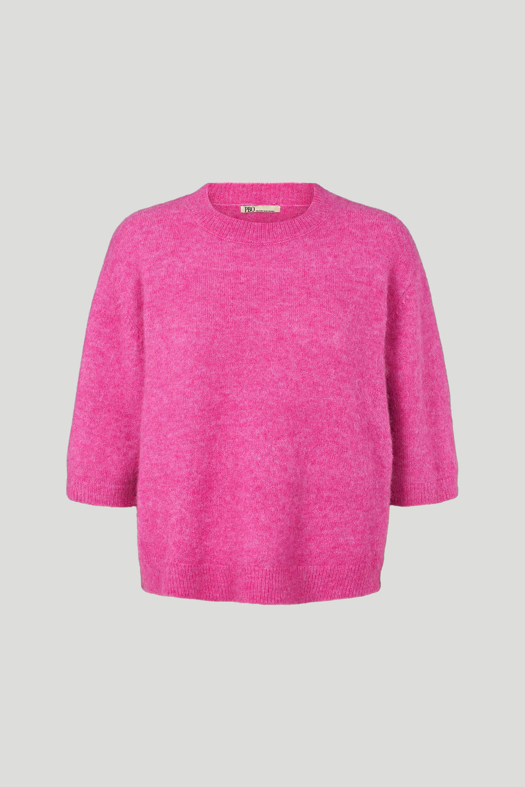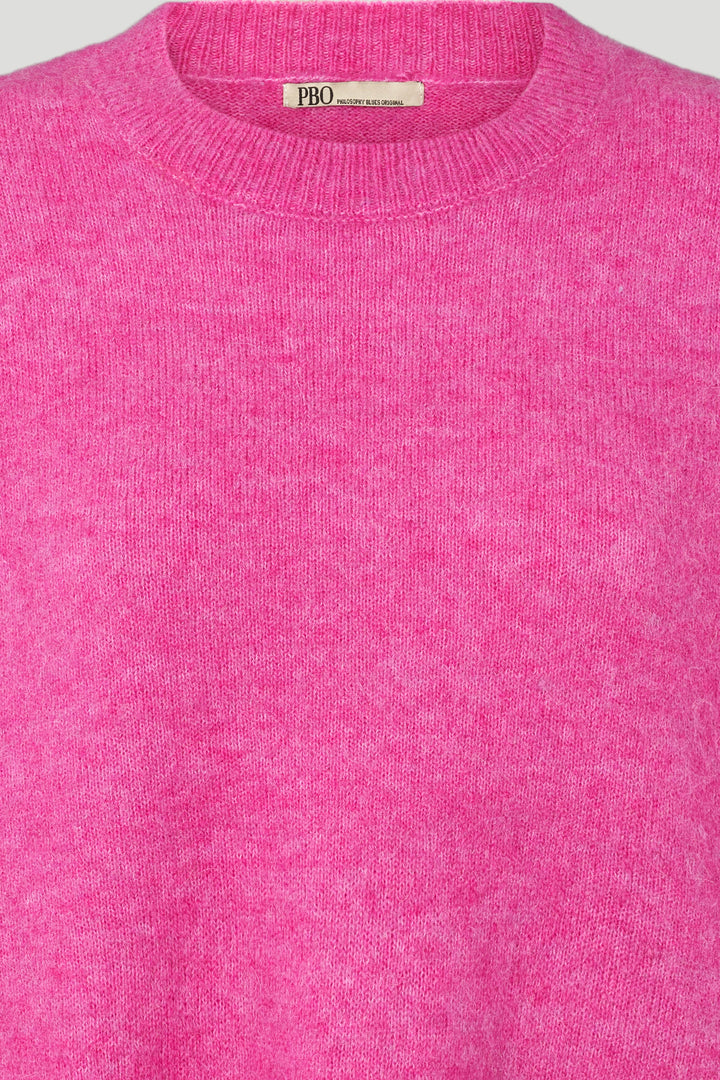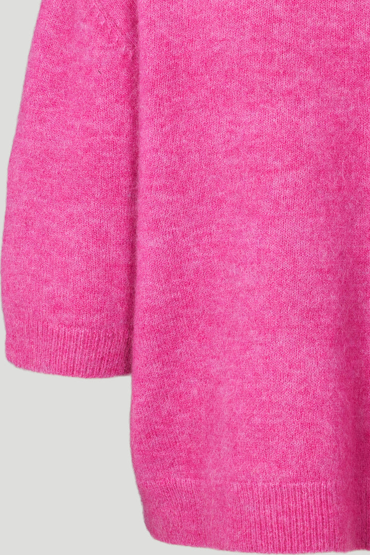 2421PBOKonto er en løs strik med rund hals og halvlange ærmer. Designet i en levende pink nuance, der tilføjer personlighed til ethvert look.