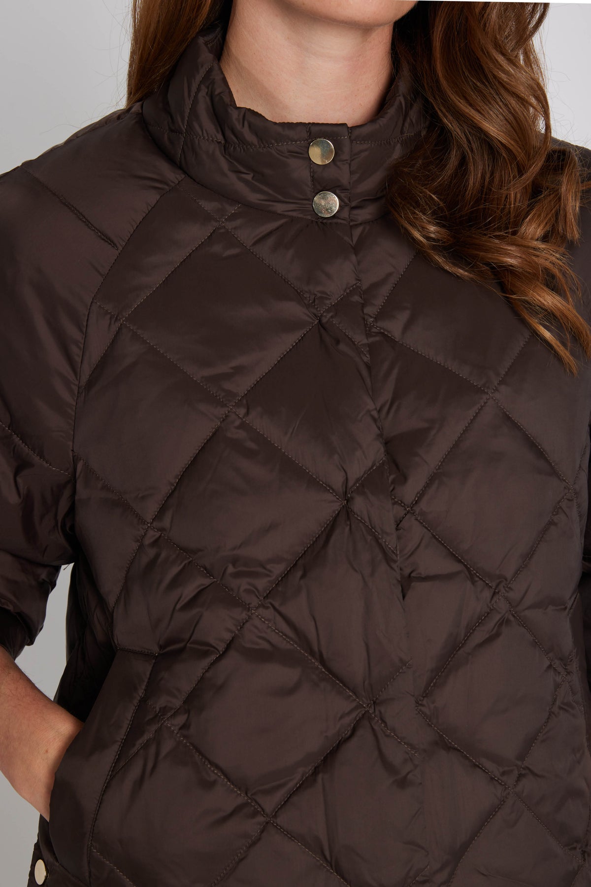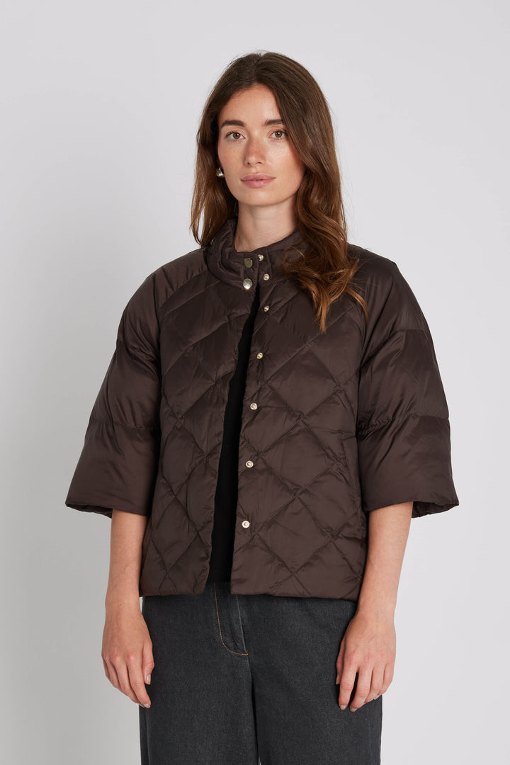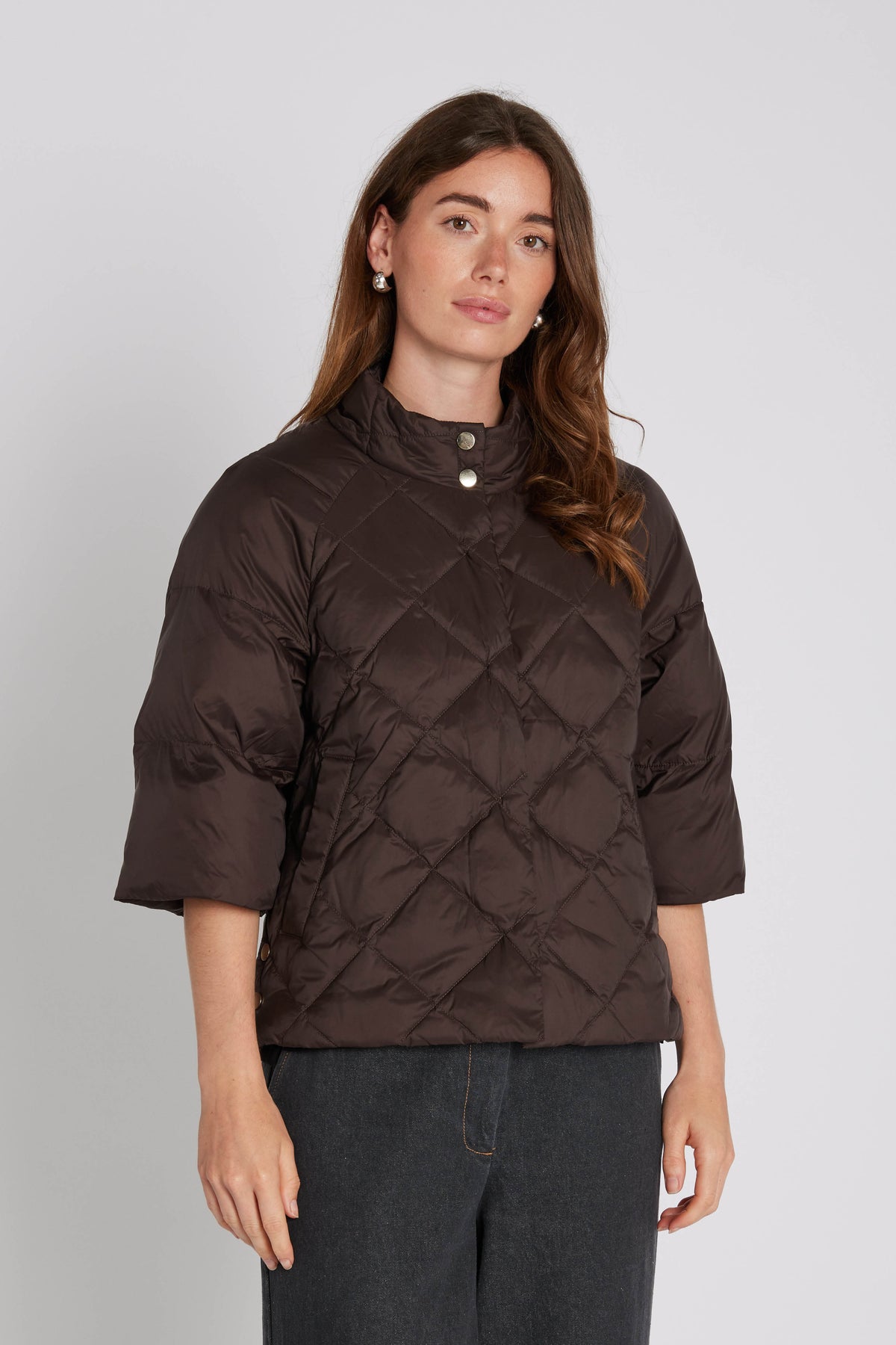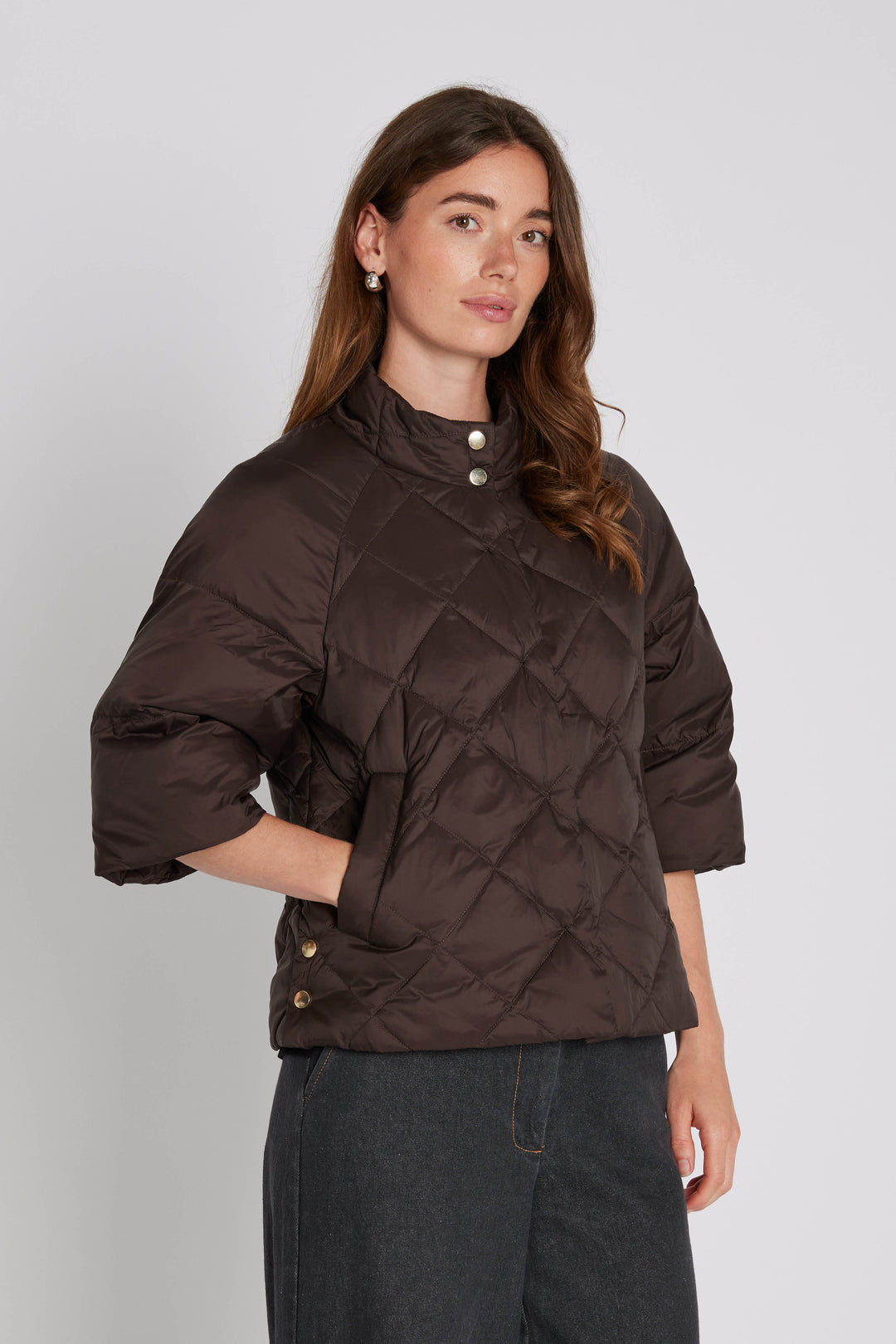 1575PBONikki er en quiltet jakke med løs pasform, cropped længde og trekvartærmer. Designet kombinerer komfort med moderne funktionalitet.