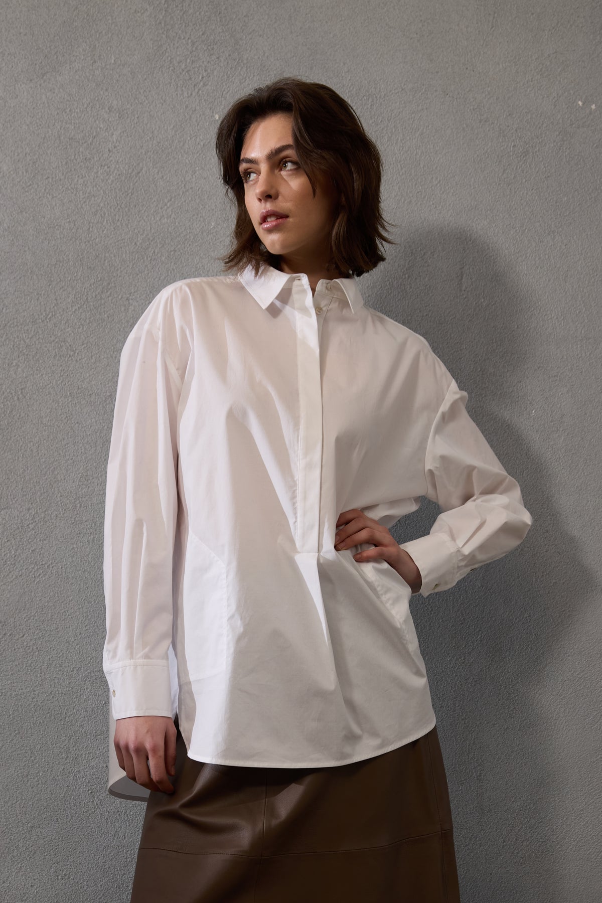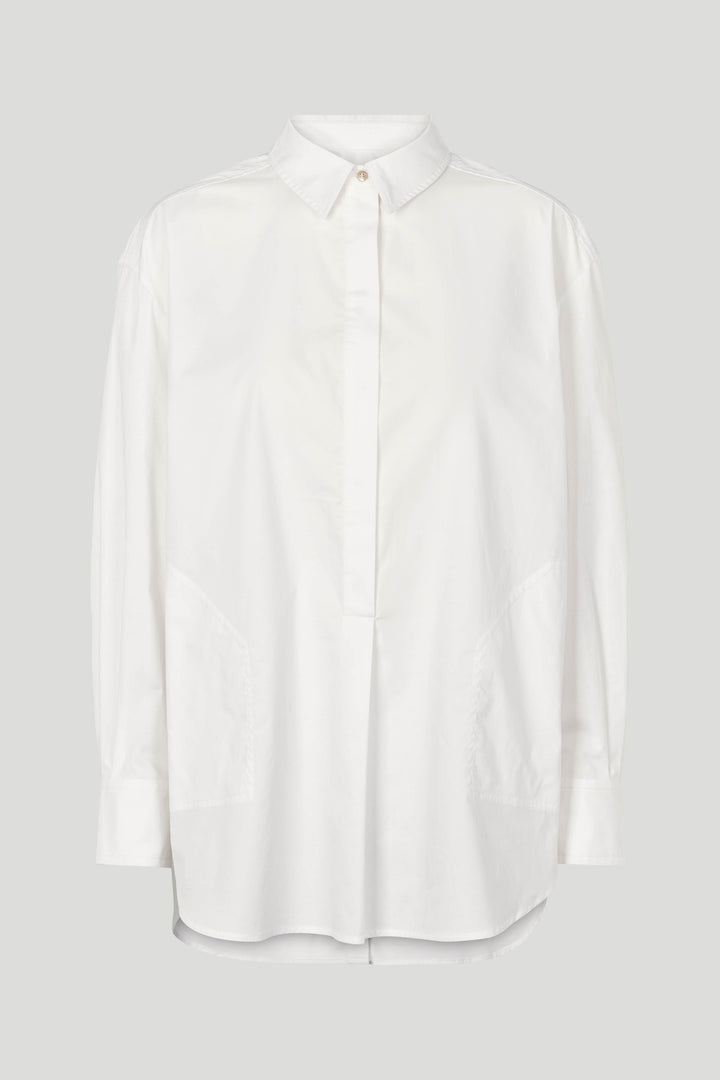 4111PBOTomala er en oversized skjorte med skjult knaplukning, klassisk krave og afrundet kant. Skarpt og stilrent design i sprød bomuld.